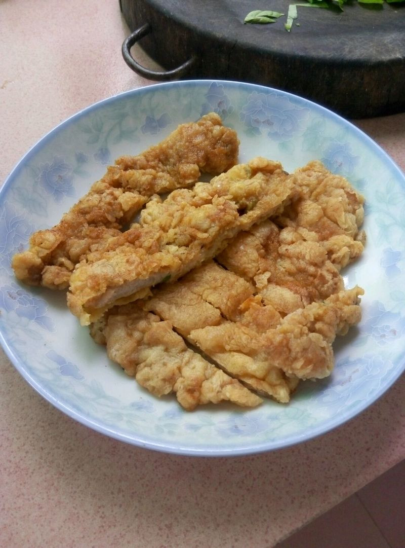 这一步我又忘记拍照了,晚上我要做日式猪扒饭,所以我晚上会记得拍的。 腌制好的肉片,拿出来。 取一个干净的大碟子放入多点面粉,一定要厚点。 再拿一个碗,打三个鸡蛋进去,打成蛋液。 把肉片从碗里拿出来,粘在肉片上的葱花什么的要拿掉。 把肉片放去面粉碟里,使两面均匀抹上面粉,用手压实。 抖掉多余面粉。 把裹了面粉的肉片放去蛋液里两面裹上蛋液,拿起来,把多余蛋液沥掉。 再把它放去面粉碟里,两面均匀粘上面粉,压实(不可以露出蛋液,一定要压实,否则会影响美观,也不可偷懒省去任何一步裹面粉,两层才能让它酥起来) 锅里放入和肉片相当的油,小火烧热(一定要小火)。 等等油热起来了把肉片放进去,还是小火,煎一分钟左右(时间自己把握,主要是看到上面的边上有点金黄了就可以翻面煎了)酥肉猪扒的烹饪技巧