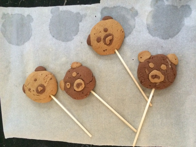 7⃣️然后将纸棒棒插入后压扁,再用不一样的颜色做耳朵鼻子眼睛~然后175度12分钟(看自己家烤箱哦,十分钟之后就看一下哈)