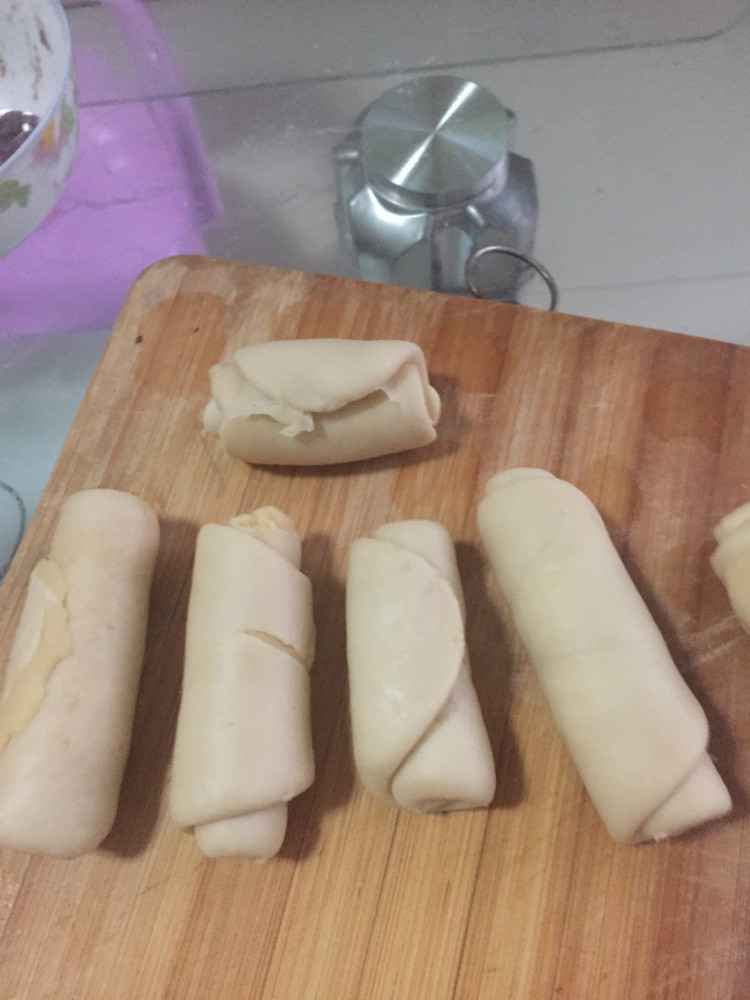 如果家里有猪油或者黄油,最好用那两种,起酥效果比较好,我这正好没有,所以就大胆尝试用食用油的