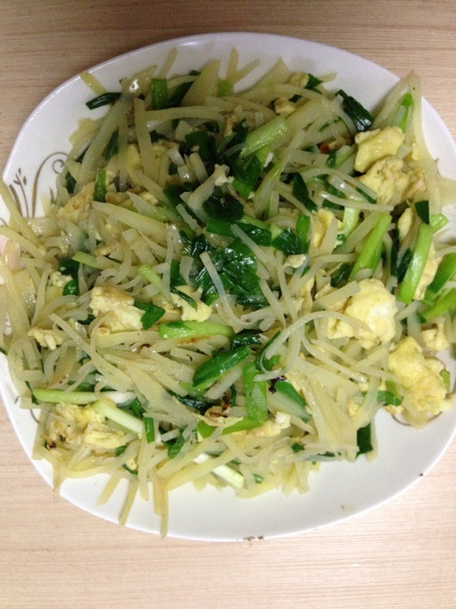 韭菜鸡蛋土豆丝(待客第一道)