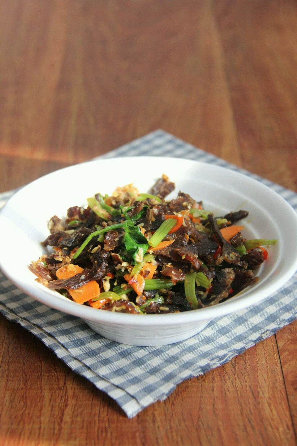 进入腊月又到了熏制腊肉的时候,我跟老公都爱吃牛肉,所以爸妈总是会熏制腊牛肉给我们。今天这道菜用的腊牛肉是去年过年剩下的存货,放冰箱冷冻,想吃的时候拿出来放冷水泡软即可。