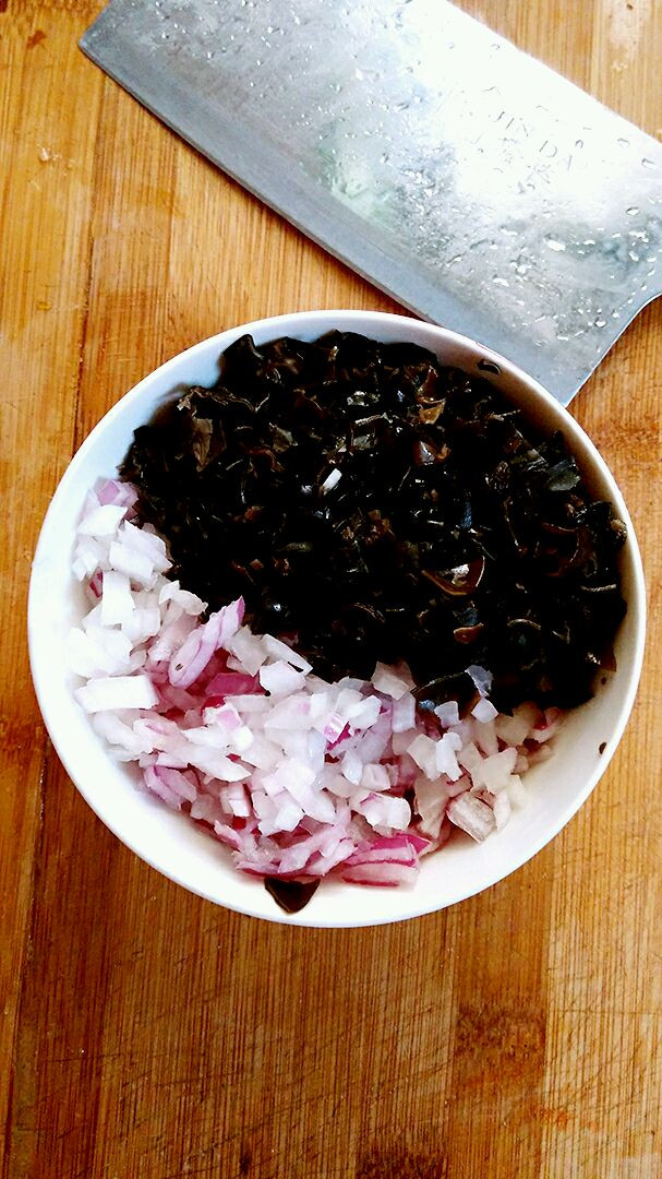 因为蚕豆酱本身就是咸的,所以没有放盐,可以看个人口味调节,酱好肉馅之后尝一下,觉的不够咸再加点盐。不喜欢蚕豆酱的,甜面酱、豆豉酱都可以。