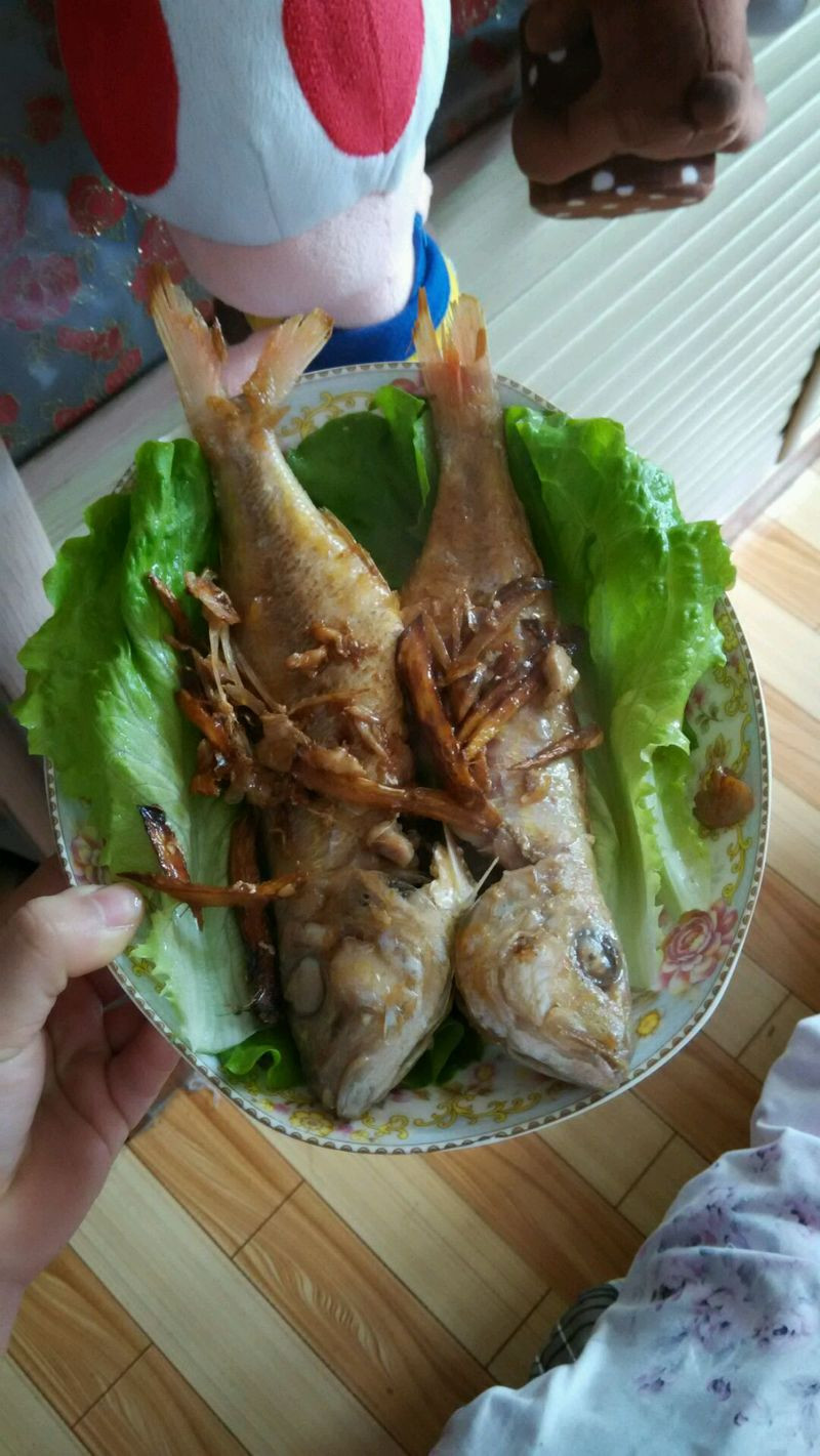 已经腌制过的红衫鱼在煎制中不用放盐了 姜丝炸至金黄干 最好去腥