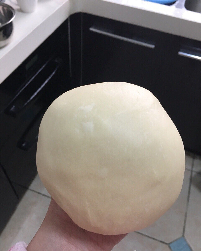 因为我做了非常多次,有时候面团粘手有时候不粘手,如果粘手就沾一些高粉或者玉米油再揉面团也是可以的,不影响的!你们一定要做这款面包!太好吃了!有问题可以留言问我~我是菜鸟新手,第一次写面包食谱!请多指教!