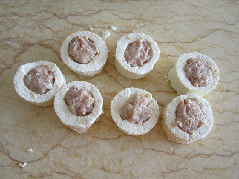 3.我用的猪肉末是用料酒,盐,蛋清调味好的