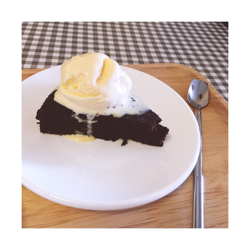 天气逐渐炎热,冰激凌和巧克力是很多女孩子喜欢的甜食,在众多巧克力蛋糕里,其实我最爱的是布朗尼,布朗尼蛋糕是一位名叫布朗尼的美国老太太在做蛋糕的时候忘记打法奶油而做出的“失败的巧克力蛋糕”,可是却没想到,这个失败的蛋糕口感会那么好。于是后人就有布朗尼给它命名,它还是一款烘培入门级的蛋糕。当冰激凌浇在布朗尼上面,会发生什么样的故事呢?奶味,巧克力,核桃仁,一起入口,啧啧…