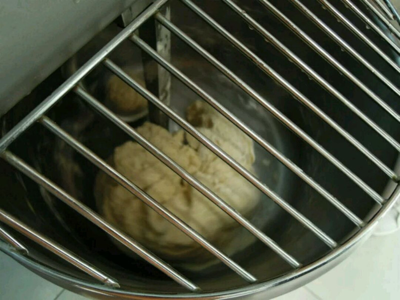 ;水不要一次加完,大概留50g水,每个面粉牌子吸水量不一样,一旦全加入最后会太粘手就不好操作了。