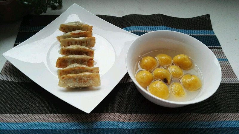 锅贴也适合做早餐,头晚准备好原料(馅随意)、和好面,早上切、拌馅,擀皮、包、煎很快的。面粉边倒开水边用筷子搅拌烫一部分,再加冷水和成光滑的面团(皮是烫面+死面)。