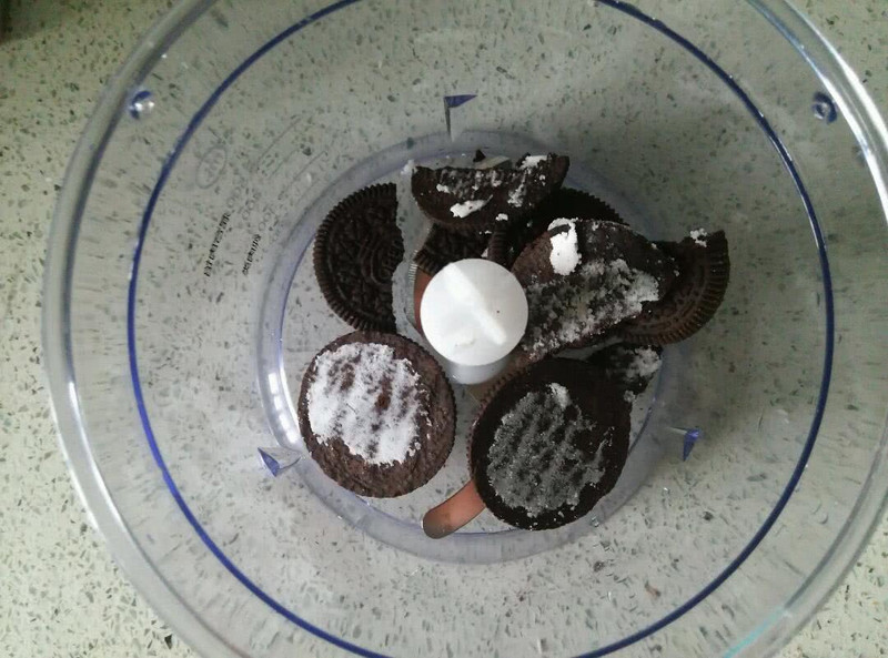还可以加其他各种各样的水果。没有料理机的朋友可以把奥利奥放入保鲜袋里用擀面杖擀碎。