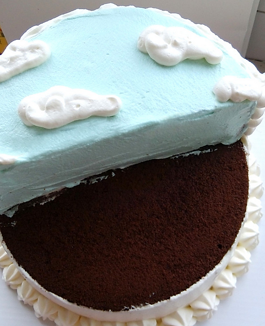 双层八寸可可蛋糕,蓝莓夹心,立体的恐龙是糖霜饼干,河流是雪碧做的果冻。糖霜饼干需要提前一晚做好,第二天刚好晾干。也可以用买的塑料恐龙摆件,但是个人感觉还是能吃的饼干更好一些。