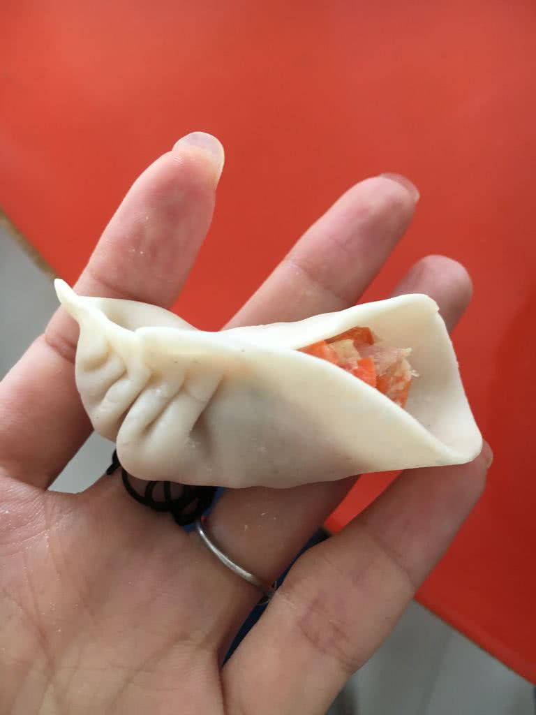 而且自己擀的终归没有那么薄那么圆。我们这边卖的饺子皮还不错,不用水沾,直接可以捏紧~
