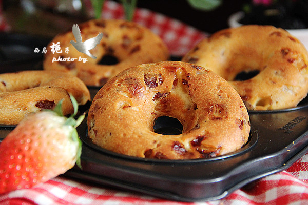这是一个马芬蛋糕的方子,我放入学厨甜甜圈模具里烤的,是为了蛋糕底部焦黄口感更加酥香浓郁。咬上一口附有洋葱和培根香气的外壳。满口飘香,会有一种满足感。蛋糕中的液体我用豆浆来代替,豆浆融入洋葱和培根的味道里很和谐,很搭调。