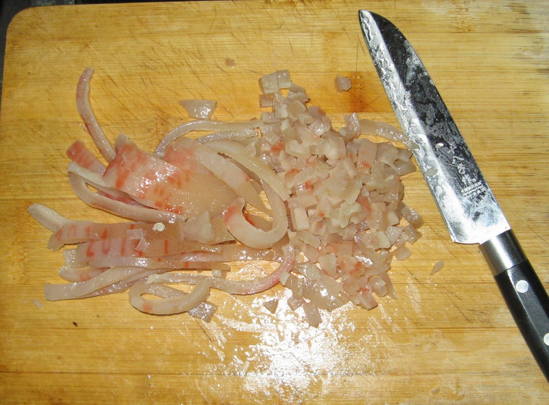 做皮冻很常见,切长方块,也有用碗做模具,我用硅胶蛋糕模做,竖起来做造型,别具一格。有很多人做的皮冻是白色的不透明,问题是加工时技术不过硬,留了很多肥膘。这要有一定的厨师功底。反复练习的。