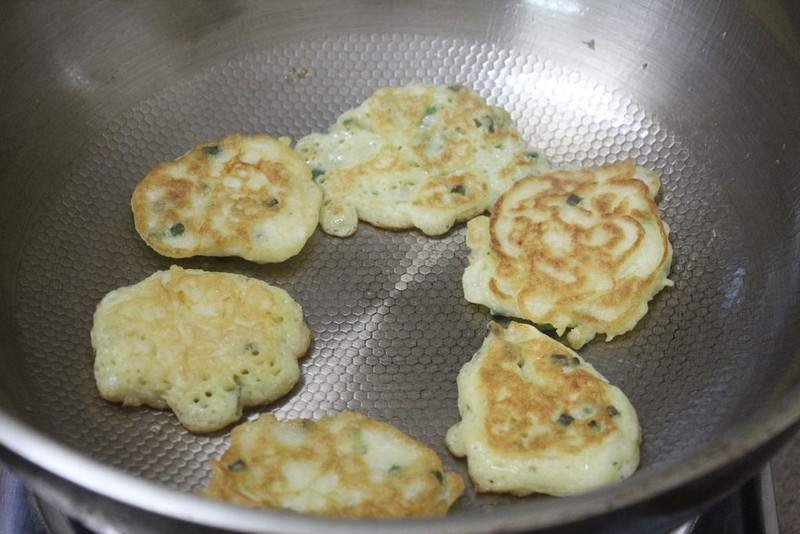 在要准备擦土豆的时候才想到家里没有擦丝器,心里那个着急啊。没办法硬着头皮切土豆丝,本来自己切土豆丝的技术就很一般,切这个土豆丝的时候一直想着一定要细,切出来没有让自己失望,加了土豆丝的饼好吃很多。自己稍微改良了一下。味道很香。就是不宜吃多,容易上火。