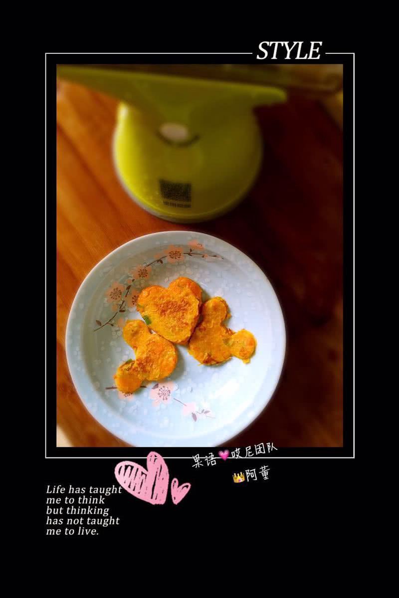 胡萝卜小饼:胡萝卜榨汁,盆里磕一个鸡蛋打散,倒入胡萝卜汁搅拌均匀,少许面粉搅拌均匀,把胡萝卜渣放进去搅拌均匀,放入葱花,少许盐,生抽,虾粉搅拌均匀,不粘锅抹一点油,舀一小勺面糊放进去摊开,小火两面煎熟即可,可以煎好后再压出模型,好看营养又好吃。