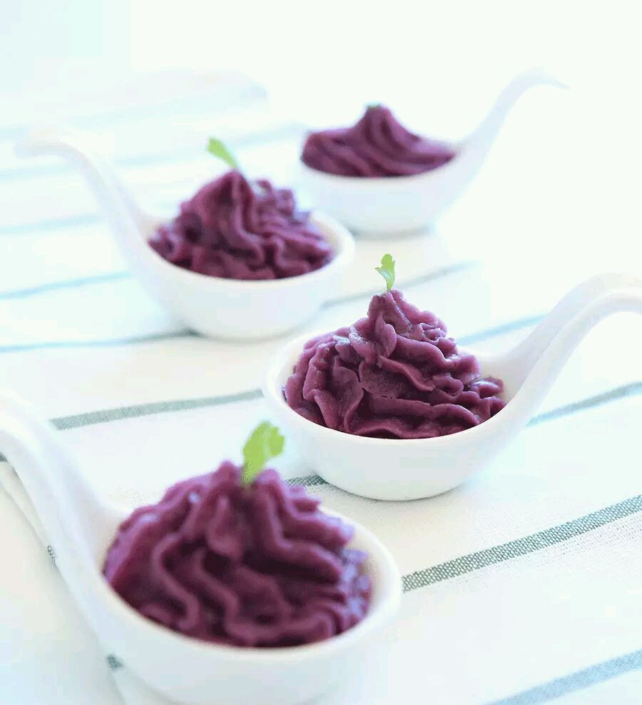 紫薯含有维生素A、B、C等8种维生素和硒、铁等多种矿物质,营养均衡、全面,而且紫薯膳食纤维有利于宝宝通便。
