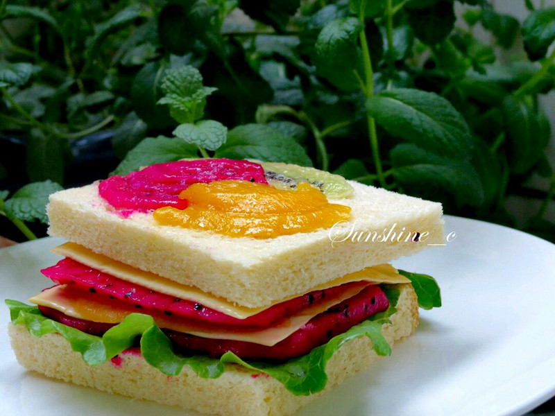 由于时间的关系,为妈妈制作了这个水果三明治,虽简单却不失营养,芝士的加入更丰富多彩,妈妈看见的时候特别开心,其实无论我做什么她都会很开心,在妈妈眼里我是个永远不会做饭的女儿,祝愿妈妈健康开心每一天!