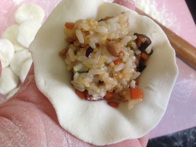 女儿喜欢吃烧麦,从幼儿园接她回来的路上会经过一个主食店,偶尔就会从那里买上几个烧麦回来吃,后来一寻思,烧麦不就是猪肉、香菇、糯米馅么,既然会做包子,烧麦也应该会做,而且还不用发面,包烧麦也不需要收口,很简单的,于是就自己试着做了次烧麦,自己调整了米的搭配,没有单纯的只用糯米,加了些大米和小米,没想到味道比买来的好多了。而且用了美的的蒸汽炉,上汽快,很快就蒸熟了,很是方便。