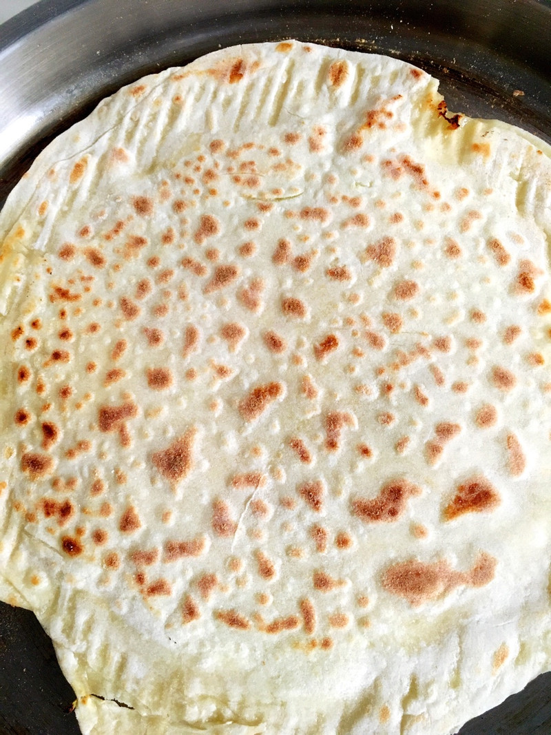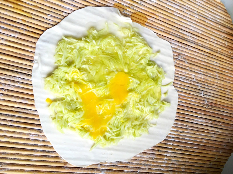 面团擀成面饼时要及时撒些干粉防粘,饼烙制时要一直小火,边缘要用铲子按压使充分熟透。