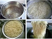 2、煮面的时候可以加适量盐,一是让水不容易沸出来,二是给面入点味。煮好的面条不要过冷水,直接沥干,否则面条水水的不好吃。