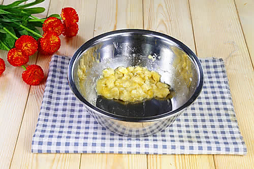 2.去皮的香蕉遇空气容易氧化变黑,不用过早压成泥,等到黄油打发后再压制即可,也可以加入少许柠檬汁,能让其不易变黑。