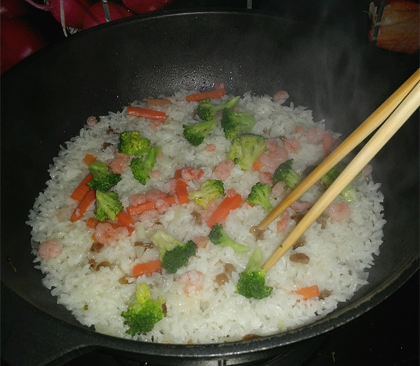 快至周末了,家里的冰箱也空空也;看看冰箱里还有点点小虾仁,素菜也只有西兰花和胡萝卜了,于是就将它们组合做了这道什锦烩饭;因为西兰花的颜色太娇嫩提前焯水再后放入的效果还不错,至于口味吗?一句话:一大盘的什锦烩饭,分分钟搞定就知道了吧~~~`