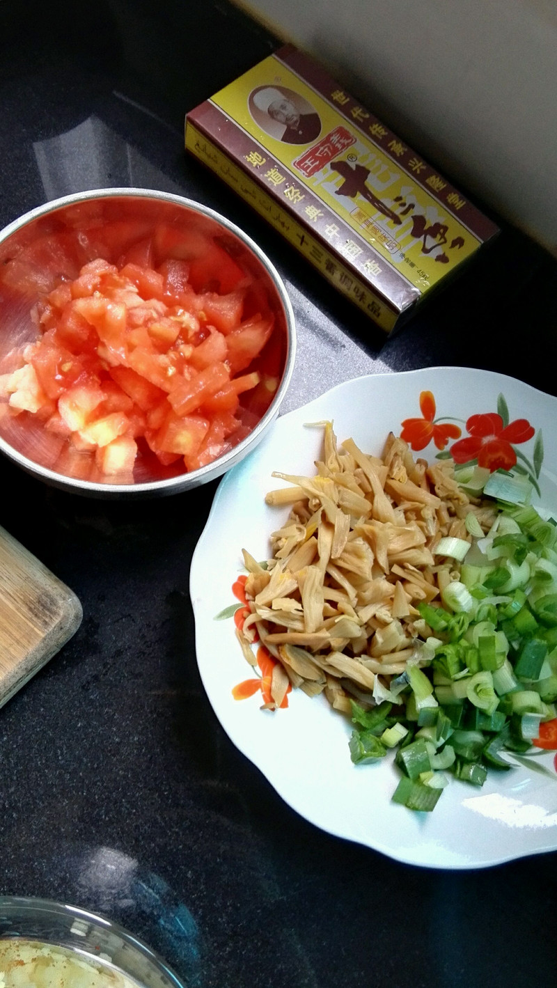 记得上大学那会儿,跟LG在学校附近一家面馆里吃过一次,杨凌蘸水面,LG一次就爱上了这口~后来在临潼吃过一回更好吃的,他就一直对蘸水面念念不忘~昨天包饺子买了饺子专用粉,感觉很劲道,今天突发奇想的想做个蘸水面吃吃!杭州的天气多少闷热,吃点酸酸的开胃~