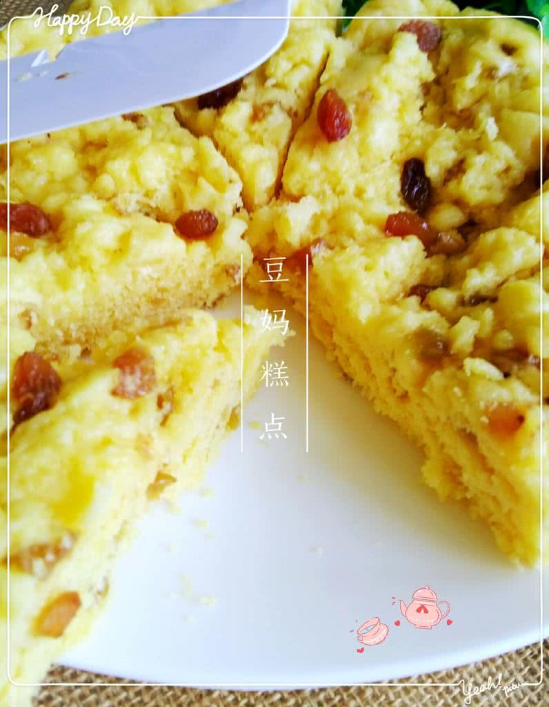豆妈说:这款玉米面发糕,加入葡萄干,成品突出玉米面香味略带甜味,十分的软松可口,喜欢吃玉米面的一定会有越吃越香的感觉啦,6个月以上的小婴儿也可以吃哦(哈,我家俩6个半月的小宝宝吃得很好啦)!