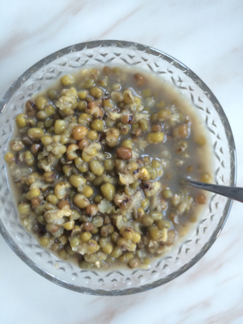 焖绿豆2 将泡在开水中的绿豆捞出,放入预热好的焖烧杯中并加满开水,焖2到3小时。 (焖烧杯真是商家的偷换概念产品,价格高,实用性不大,在公司宿舍用过2次焖白粥,焖出来的白粥真心不好吃,已经被我闲置许久,这次心血来潮用来试试焖绿豆,其实保温杯也有同样的效果),开水以刚烧开的为佳。绿豆粥的烹饪技巧