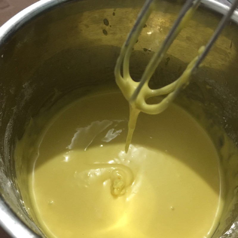 2.翻拌一定要均匀,搅拌会使蛋白消泡,蛋糕爬高失败