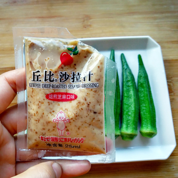 凉拌秋葵是一道特别适合夏天来吃的菜,用喜欢的调味汁来拌就行。最近发现了一个既能偷懒又超级美味的法子,那就是用丘比沙拉汁来拌!我选用的是焙煎芝麻口味的沙拉汁,再撒点白芝麻,别提多好吃了!