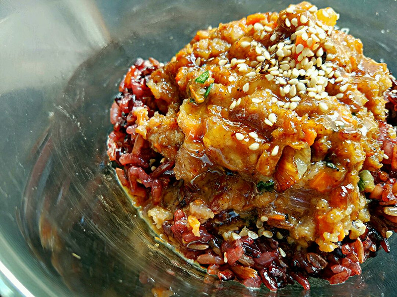 2. 绞尽脑汁构思该怎么试用,终于决定要做个热菜,日!式!肉!酱!肉酱拌饭比较容易腻,所以猜想寿司饭配着