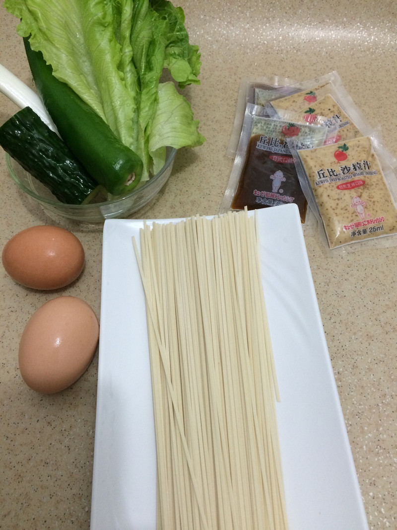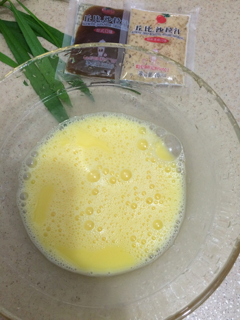 感谢丘比公司和豆果给我这次试用机会,以前只买过丘比的沙拉酱,不知道丘比系统还有这么多的产品,试用装中有6包焙煎芝麻口味和6包日式口味丘比沙拉汁,还有一个很可爱的烘焙手套。今天用沙拉汁做一个挂面鸡蛋饼。挂面可以煮着吃,也可以把它和鸡蛋摊成蛋饼,放上丘比沙拉汁味道好极了
