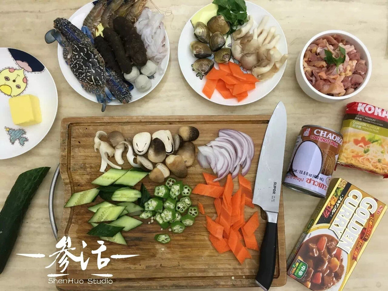 将海鲜和时令蔬菜一起送去咖喱锅中,方便快捷;再加入海参,不止美味而且更加营养。这是一道非常下饭的咖喱大餐,根据人数,选择材料可增可减,另外,咖喱汤汁到最后加入方便面煮,饱肚并回味无穷!