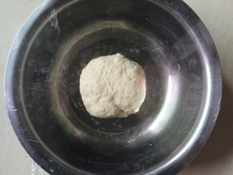 把面团取出,滚圆放盆里盖保鲜膜进行发酵,放室温发酵2-2.5倍大,手指蘸点面粉戳个洞不回缩表明发好了。
