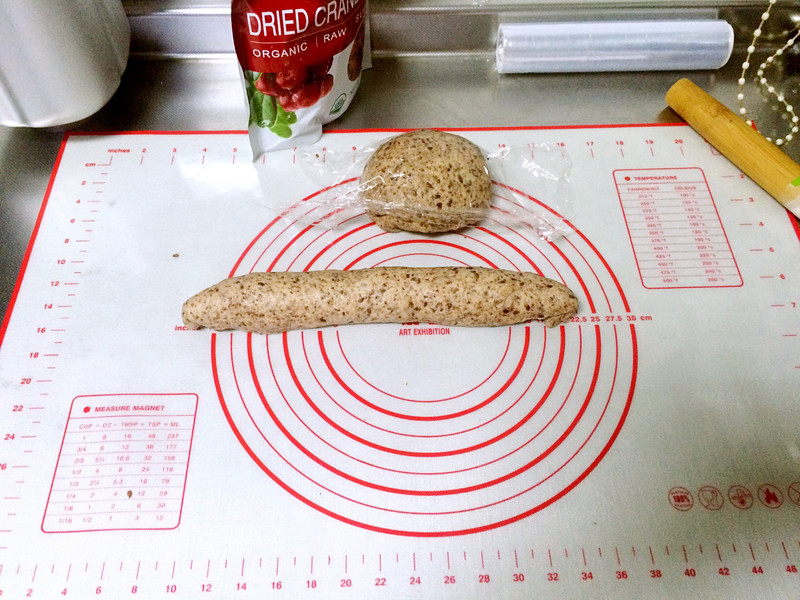 材料中的高筋面粉与黑麦粉比例可自己调整,高筋粉主要是为了使面包更松软。如果你想要减肥,可以将牛奶和淡奶油换成等量的水,将黄油换成橄榄油,减少面包热量。不过我是个很喜欢乳制品的人,所以坚持着这样的材料搭配。其中的亚麻籽是很好的食物,对人体大有好处,但揉入面团的一定要是熟亚麻籽。果干和坚果就自由发挥咯,我这次就放了蔓越梅,一直喜欢放些核桃碎块,但现在手头没有,不过依然是美味呀。