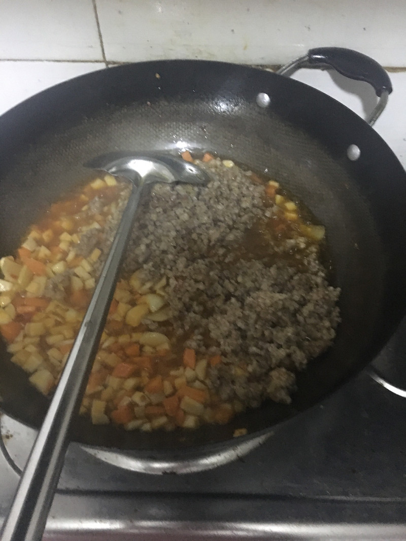 第二步忘记拍照片了,我是猪。倒入比较多的油在锅里,烧热,看着锅里油冒烟了再烧半分钟。不要怕痛哦,想想有好吃的哨子,溅几颗油在手上算什么。(•̀ω•́)✧吃货就应该有这样不怕苦不怕痛的品质。哈哈哈⊂(˃̶͈̀ε ˂̶͈́ ⊂ )把肉沫放进锅里炒一炒,两三分钟后把肉捞出来放在一个大碗里。杏鲍菇胡萝卜肉沫哨子的烹饪技巧