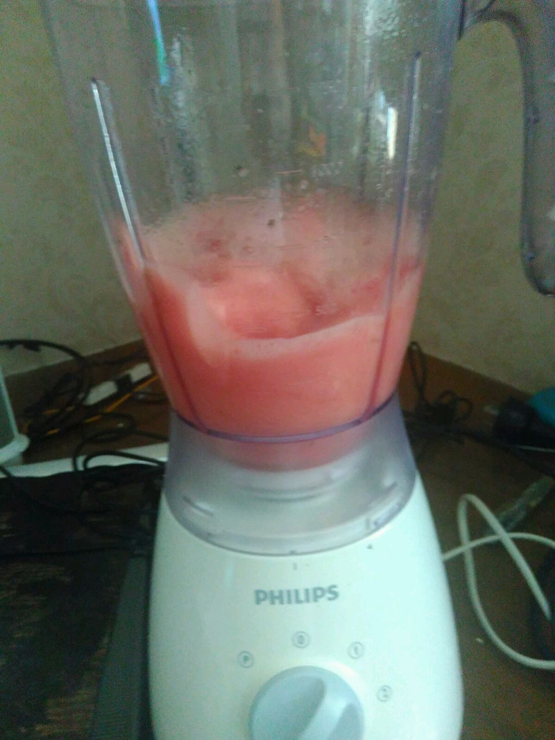 一定要严格按照菜谱中说的水量和蜂蜜(不喜欢太甜的可以不加,因为西瓜本身就是有甜度的。),要不然蜂蜜会把西瓜的甜度完全盖住这样喝着就非常腻了。