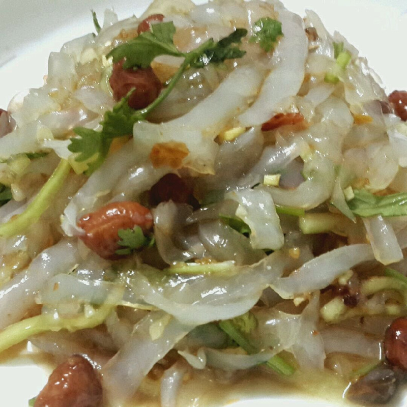 在我老家长沙也叫刮凉粉,小时候总特别爱吃这道小吃,长大了很少看到有卖的,一般遇见了也很贵,其实材料很便宜,自己做放心。。而且压根我们这买不到啊,想吃就自己第一次做了~味道不错哦~