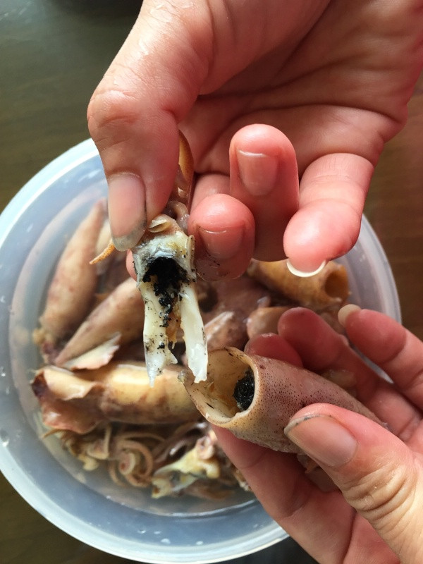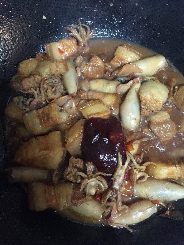 大哥给我捎了好几包干干的小墨鱼,我踌躇了好久,不知道该怎么做。上网查了半天,才知道这种东西叫籽乌,又叫海兔,北方人喜欢用来炖白菜粉丝什么的。天气尚热,白菜粉丝有点不合时宜,但秋风乍起,烧碗肉肉来补充能量吧!