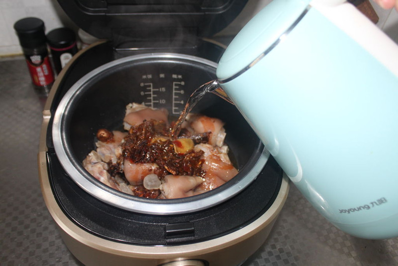 只会用电饭煲做米饭吃,感觉是要被out的节奏,在孩子开学的前一天,我收到了九阳的新铁釜,烧饭就是香的T5,因为要准备孩子开学的各种东西,各种忙乱,所以一直到9月1号早上送孩子上完学,才小心翼翼的开了箱,把它摆在那,看了又看,拍完照,看了又看,新的铁釜三代,和1,2代相比,明显的感觉是,设计的更加奢华大气,整个机身的线条也变的更优美了,即使什么都不用做,摆在那,已是一道风景的感觉。在接到试用通知,没收到之前我就已经在心里有了一个小小的菜谱,第一道就是这个麻辣猪蹄。