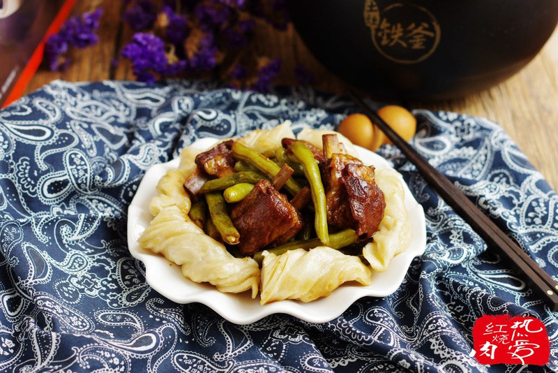 每次去农家院吃饭都不忘点那道排骨扁豆粘卷子吃,一大柴锅,看着就过瘾,一桌子人吃的津津有味美滋滋的,不过总是要去农家院才能吃我就烦了,于是研究自己在家做,今天我就去买排骨准备试试看。结果我常买肉那家排骨卖完了,扫兴而归,半路看到卖羊排的,于是突发奇想要不试试羊排做呗,于是乎有了今天这道羊排扁豆粘卷子。羊排做的粘卷子味道也不错呀!家里不可能弄个大柴锅,我就用电饭煲试试看,效果还不错,比较省心,弄上就不用管了,也不会溢锅,卷子需要死面的,估计怕发面做的一旦沾了汤汁会被泡发的,口感糟了不好吃。这样做一锅,有肉有菜还有主食,非常省事,下酒菜都有了,您还不试试看?