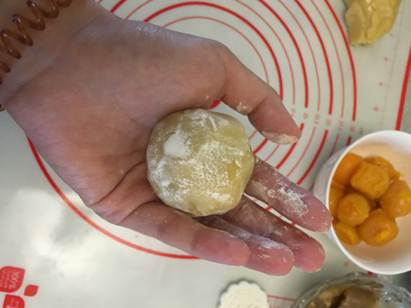 1.咸蛋黄去腥方法,用玉米油浸泡一夜,放入冰箱冷藏。2.方便脱模,在揉好的月饼球表面粘少量面粉。3.烤月饼的时候,刷少量水是为了让月饼在烤的时候不开裂。