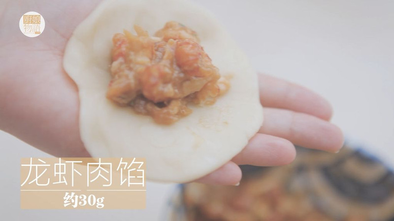 取大约30g的馅料,如果技术好可以多包一些~第一次呢也可以稍少一些。