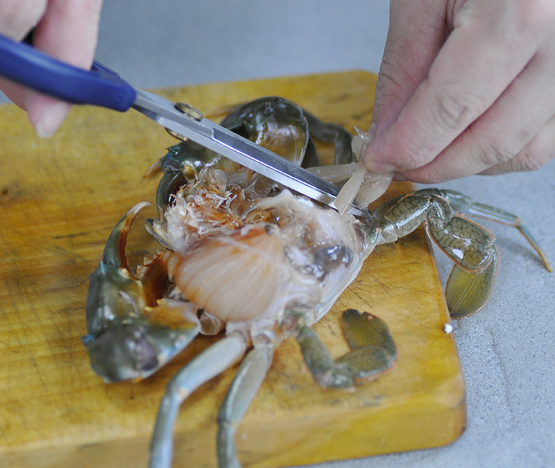 1、大家在处理螃蟹的时候要小心不要夹到手