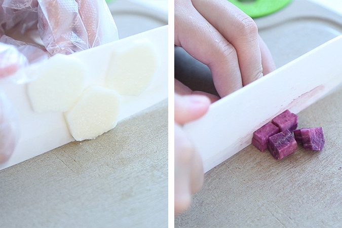 紫薯含有丰富的花青素,有利于宝宝眼睛的健康发育,山药还有能起到健脾益胃、促进消化的功效。