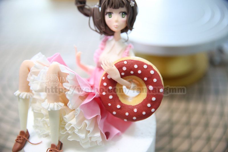 甜甜圈姑娘,翻糖人偶工艺和蛋糕整体设计,以及配上真正的甜甜圈.甜美可爱,日式手办质感的精致风格~~全手工开脸, 所有步骤均为手工制作~~~~