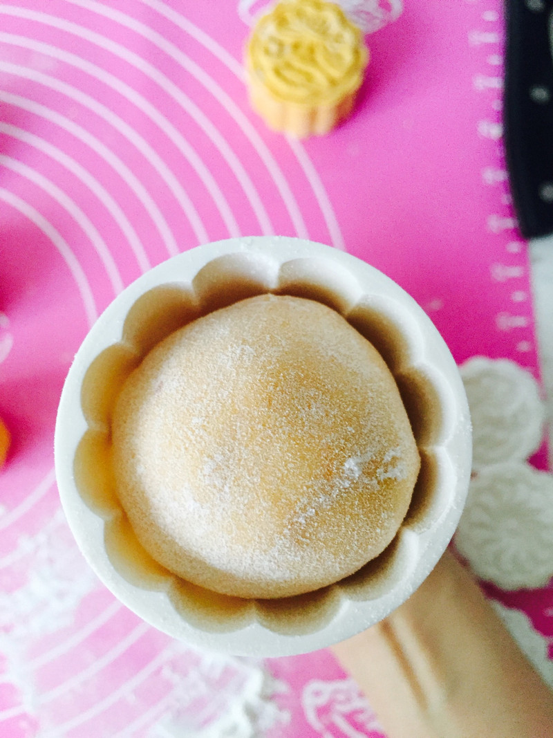 收口揉成圆形,粘上点干的糯米粉,以免粘模具