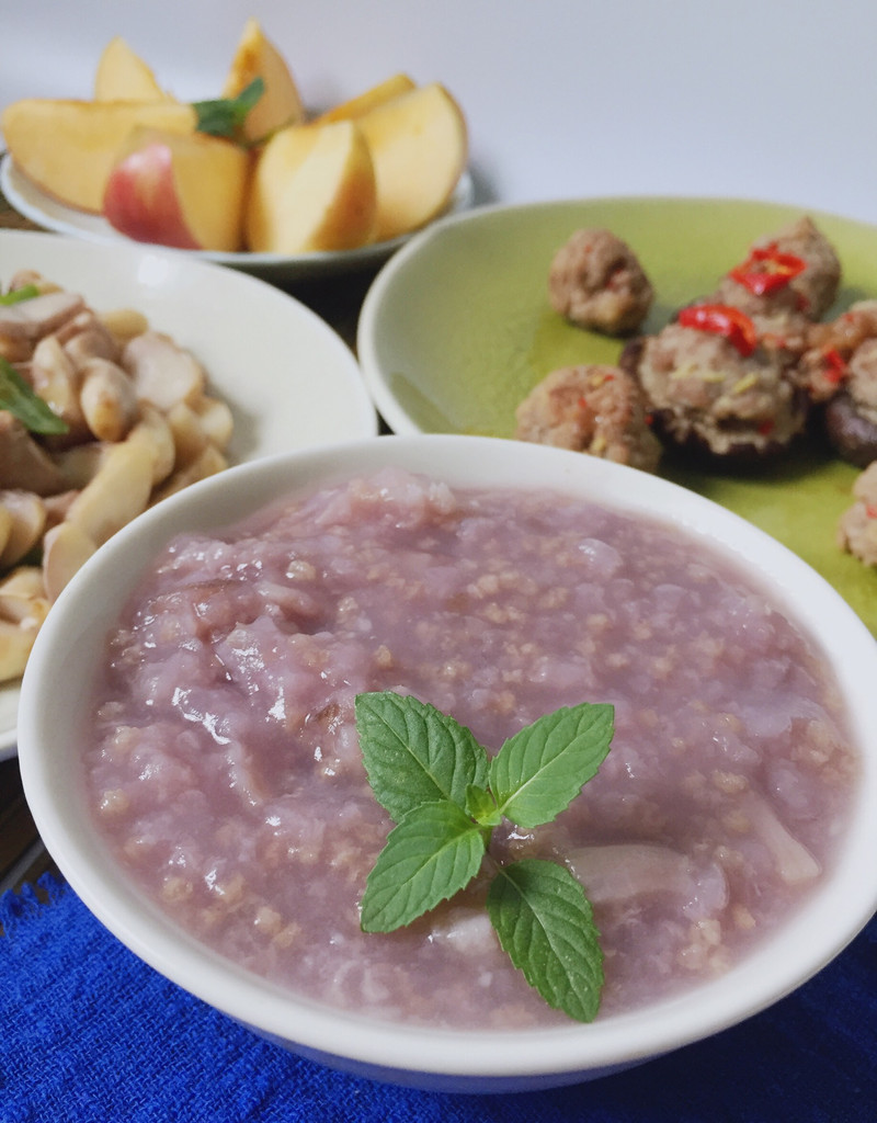 这是小米紫薯粥。很稠。不添加苏打粉。哟西!