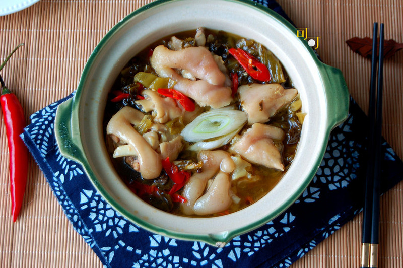 用酸菜烧猪蹄不腻,既软又糯,实在好吃。吃不完的汤别倒了,加点年糕片或面条进去,是一顿上好的早餐。